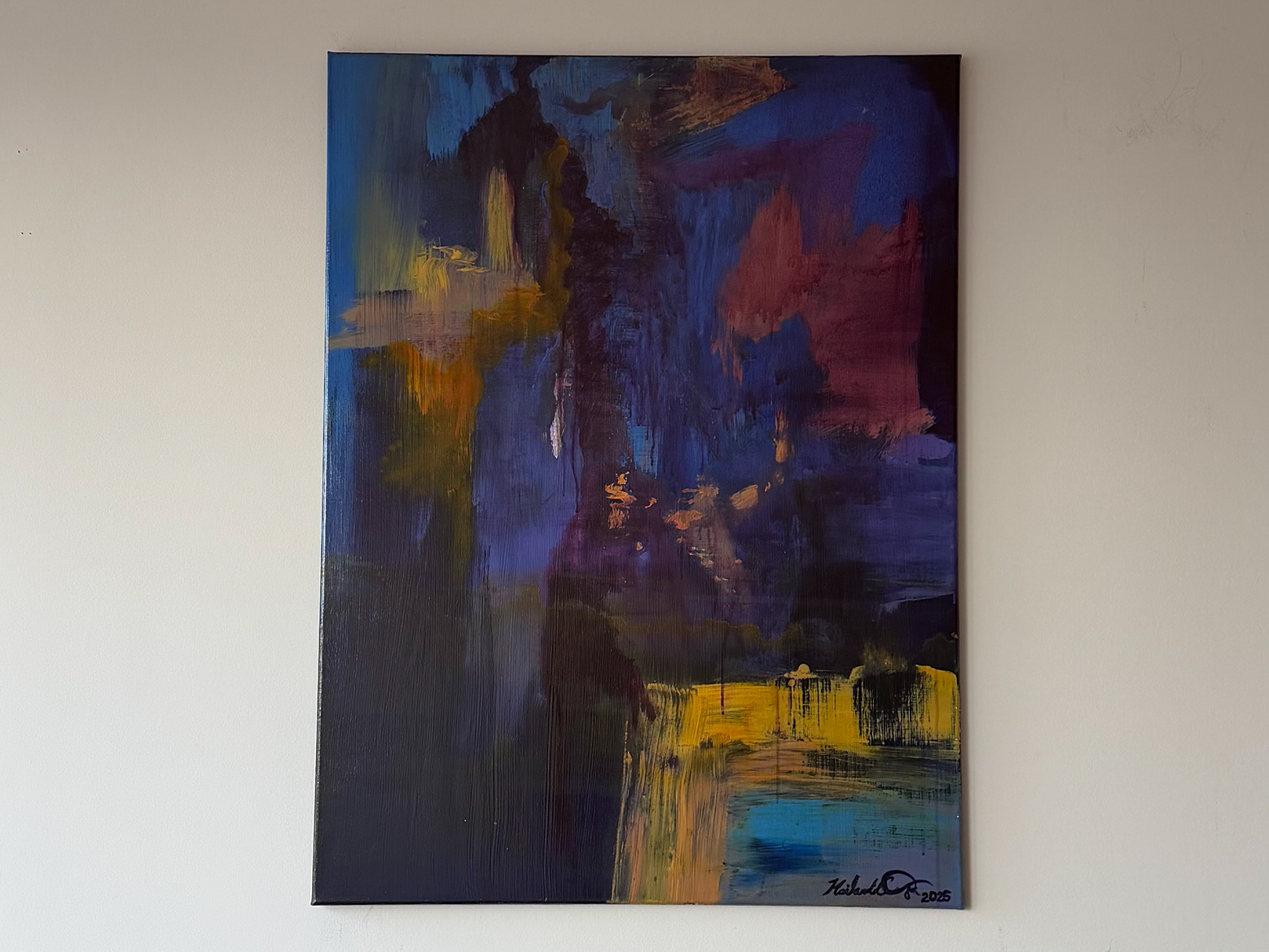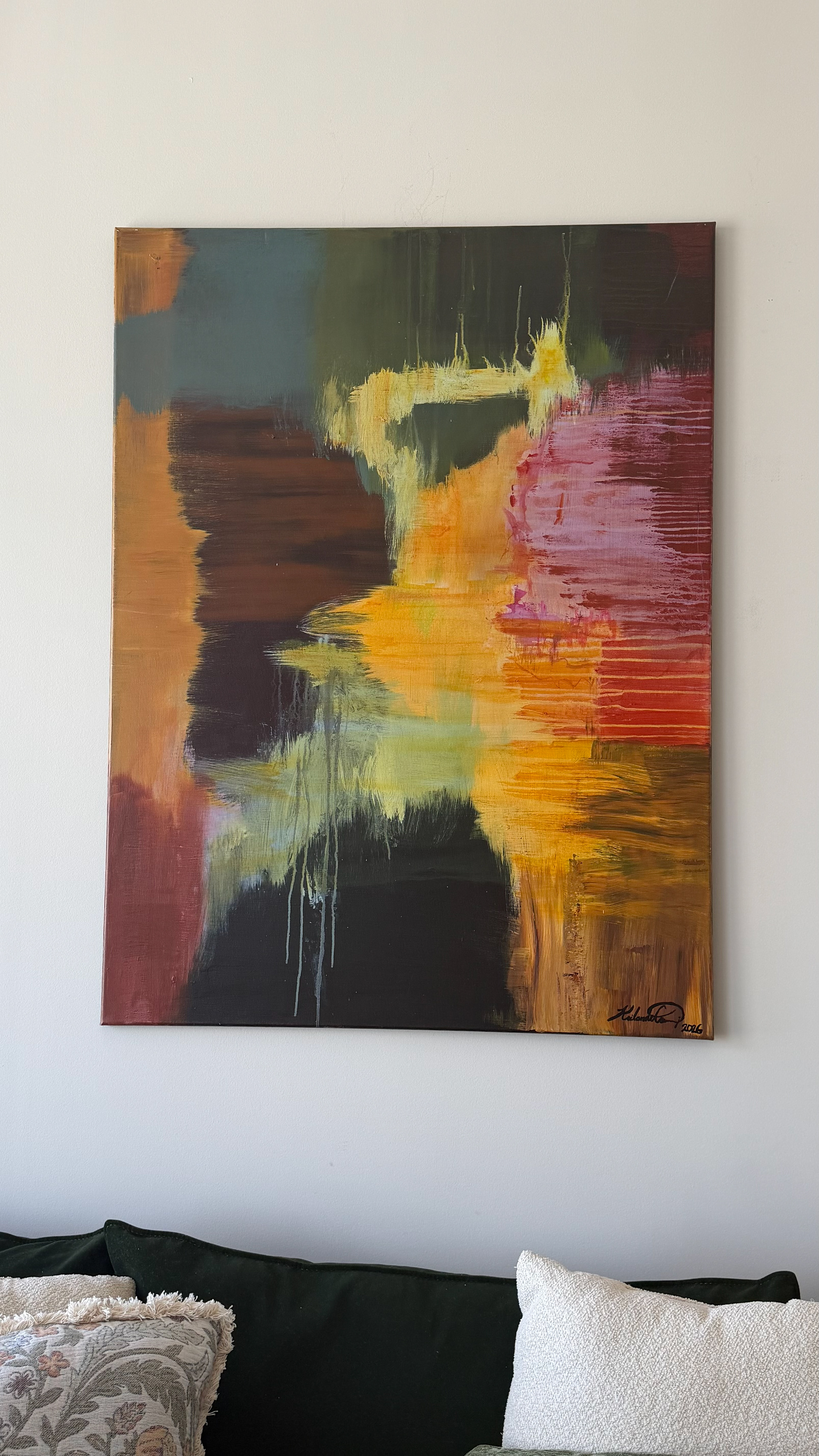 36" x 48" Mixed media painting created with acrylic and oil pastels, with a dry matte finish.