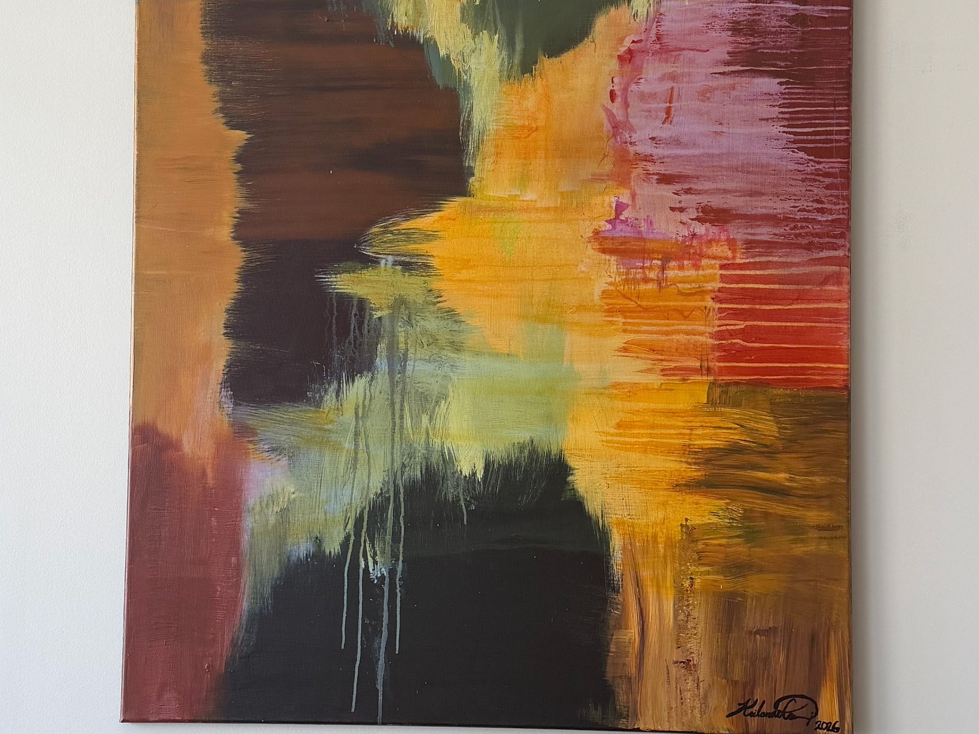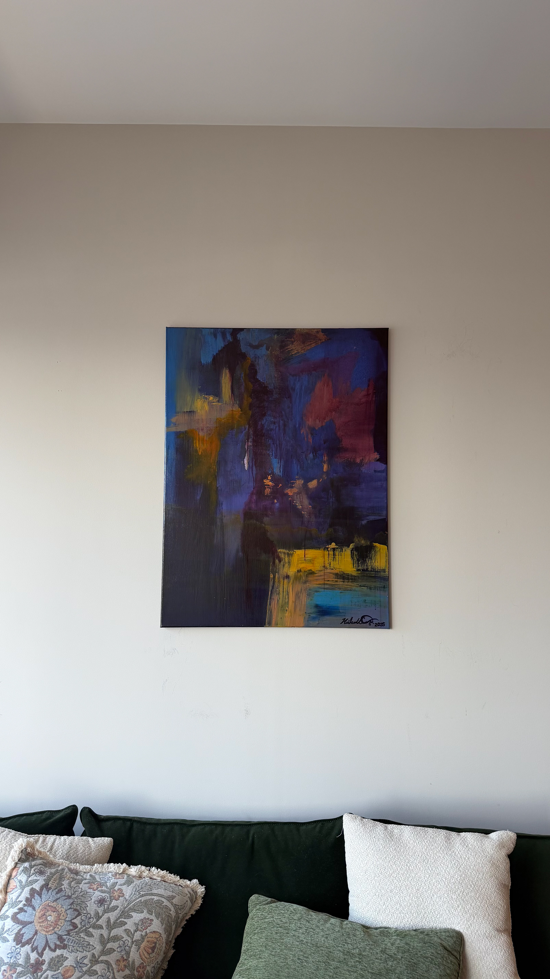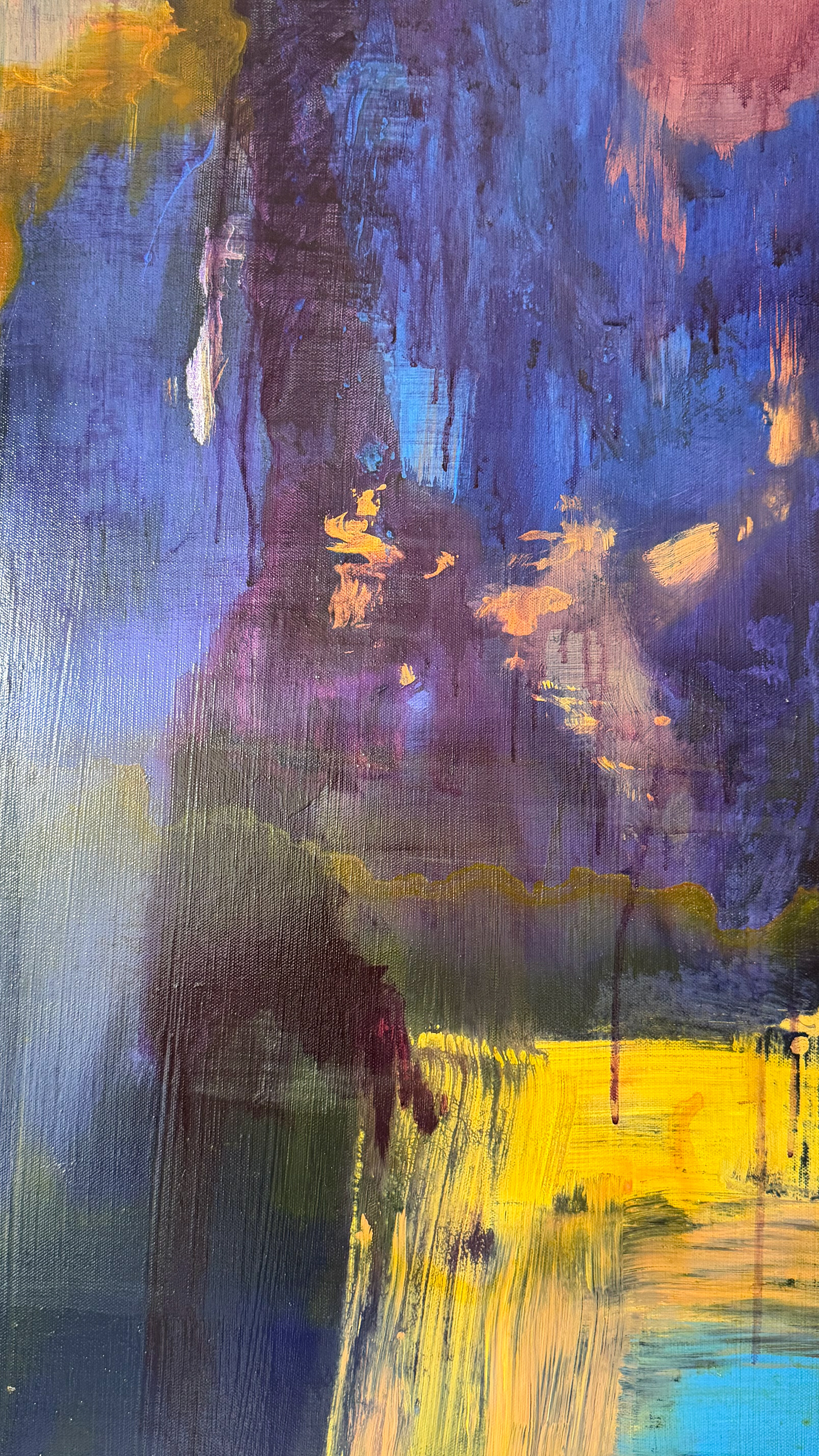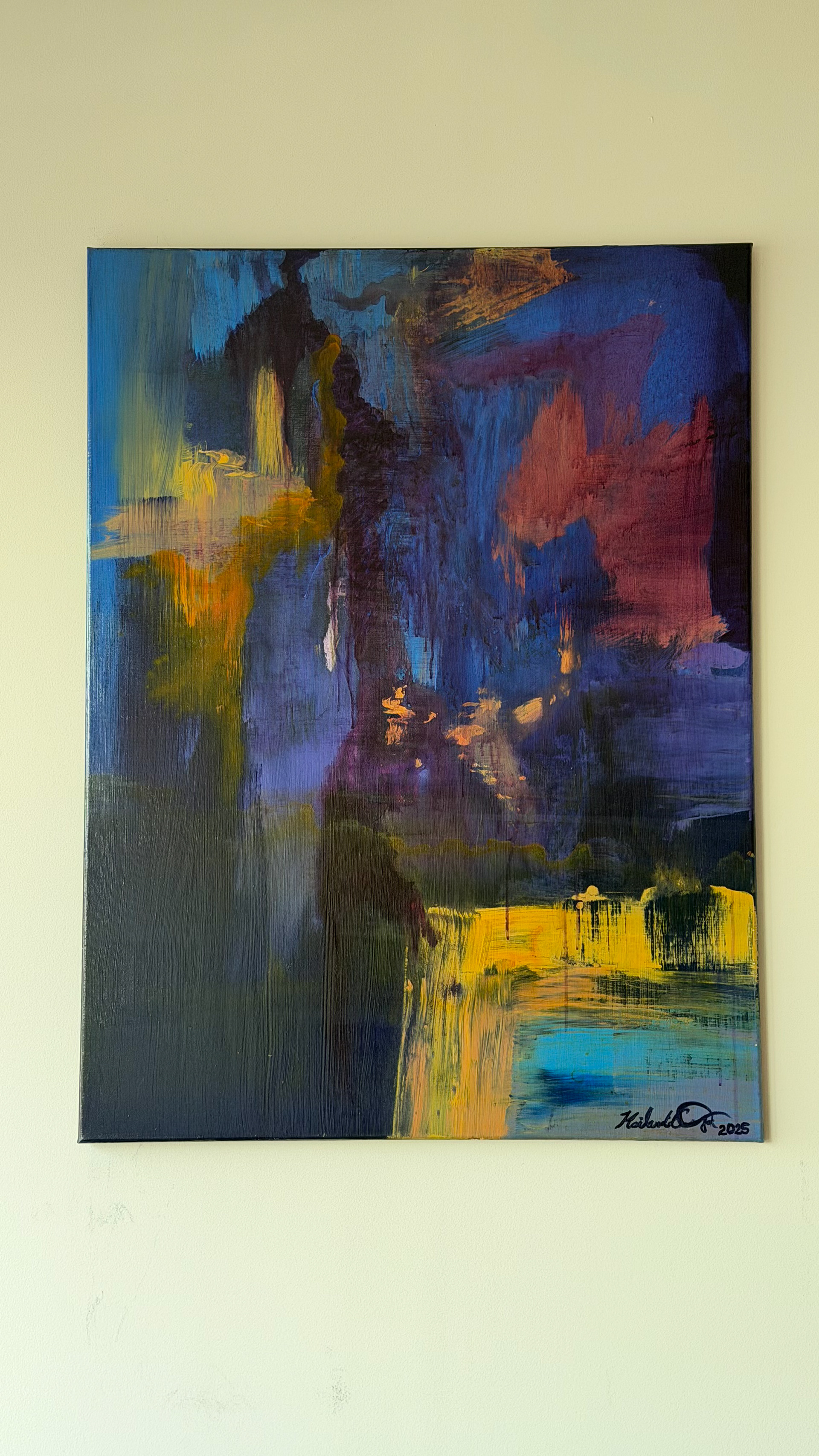 30x 40in. Acrylic on canvas with gallery-wrapped edges. Sealed with high gloss varnish.